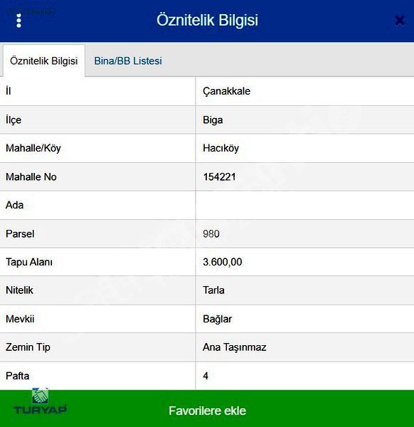 | Tapu Durumu | Belirtilmemiş |