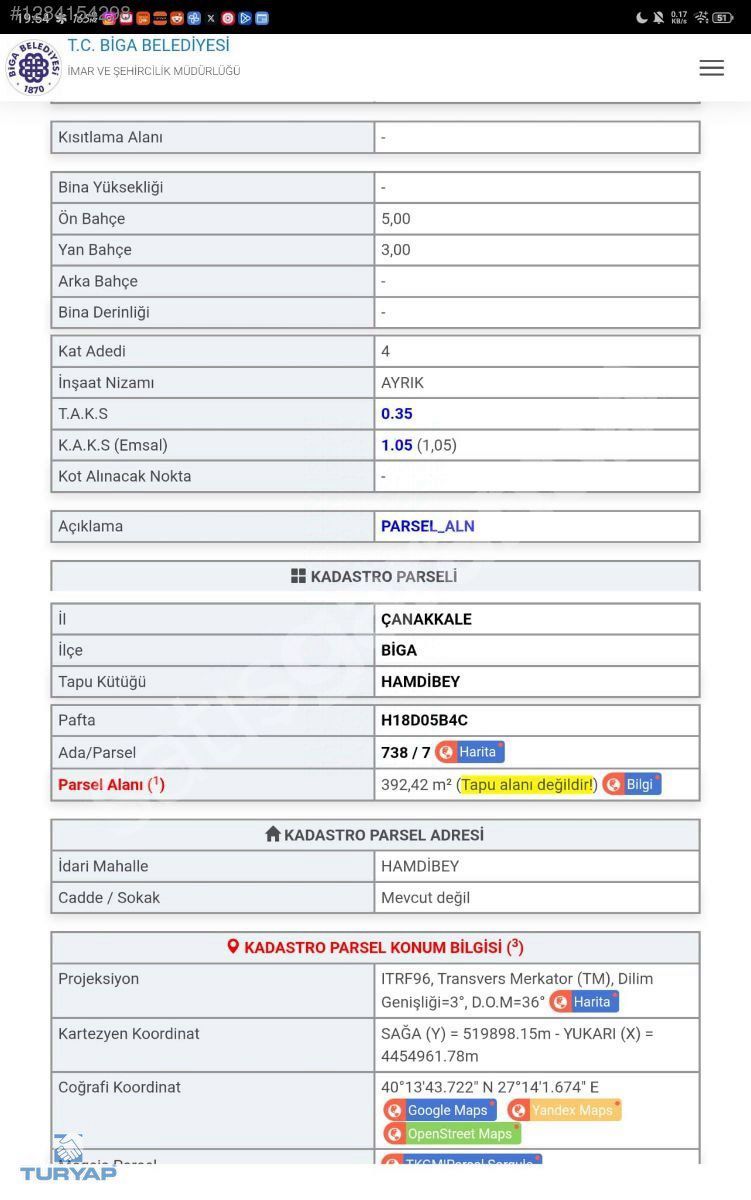 | İmar Durumu | Konut |