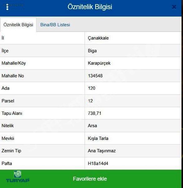 ÇANAKKALE BİGA KARAPÜRÇEK 738M2 KÖY İÇİ SATILIK ARSA