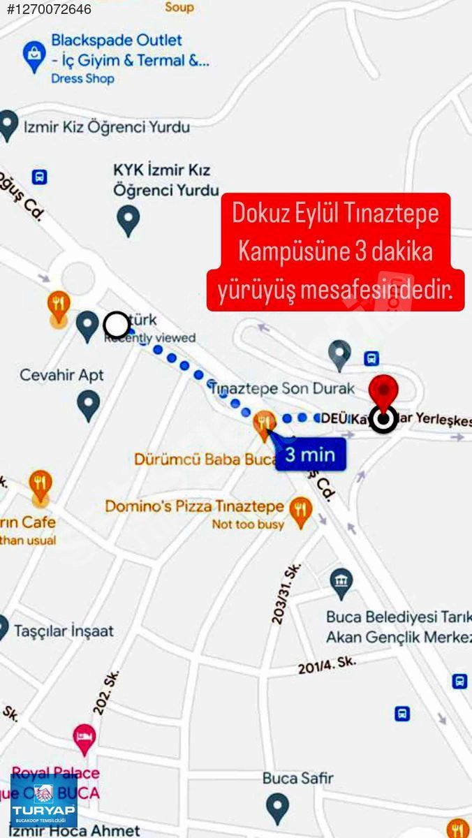 -Tınaztepe kampüs karşısı, üniversite ve otobüslere 2 dk. yürüme mesafesi.