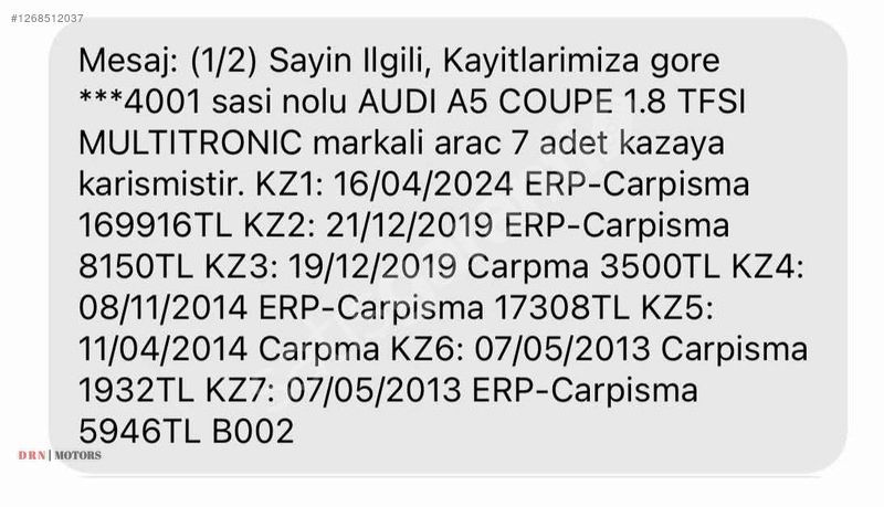 | Ağır Hasar Kayıtlı | Hayır |