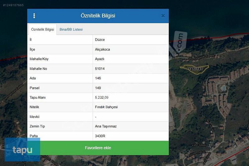 Özellikler: Düzce İli, Akçakoca İlçesi, Ayazlı Mahallesi’nde 146 ada 149 parselde konumlu olup, geometrik olarak amorf formda, topografik olarak çok eğimli yapıdadır. Taşınmaz üzerinde herhangi bir yapı bulunmamakta olup doğal bitki örtüsü bulunmaktadır. Taşınmazın bulunduğu yakın çevrede, konut ve yazlık amaçlı ve 2-3 kat betonarme özelliklerinde yapılaşma söz konusudur. Yapılaşmanın düşük olduğu bölgedeki arsalar genellikle konut amaçlı kullanılmaktadır