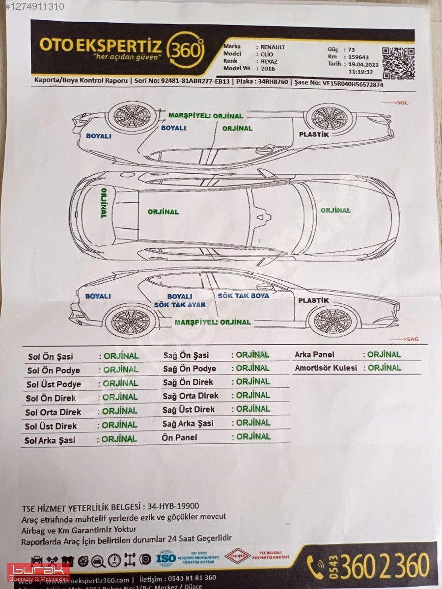 EKSPERTİZ RESİMLERDE VARDIR HASAR KAYDI BİLGİSİDE