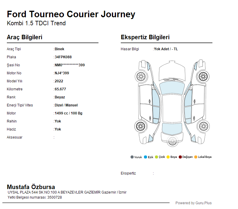 | Ağır Hasar Kayıtlı | Hayır |