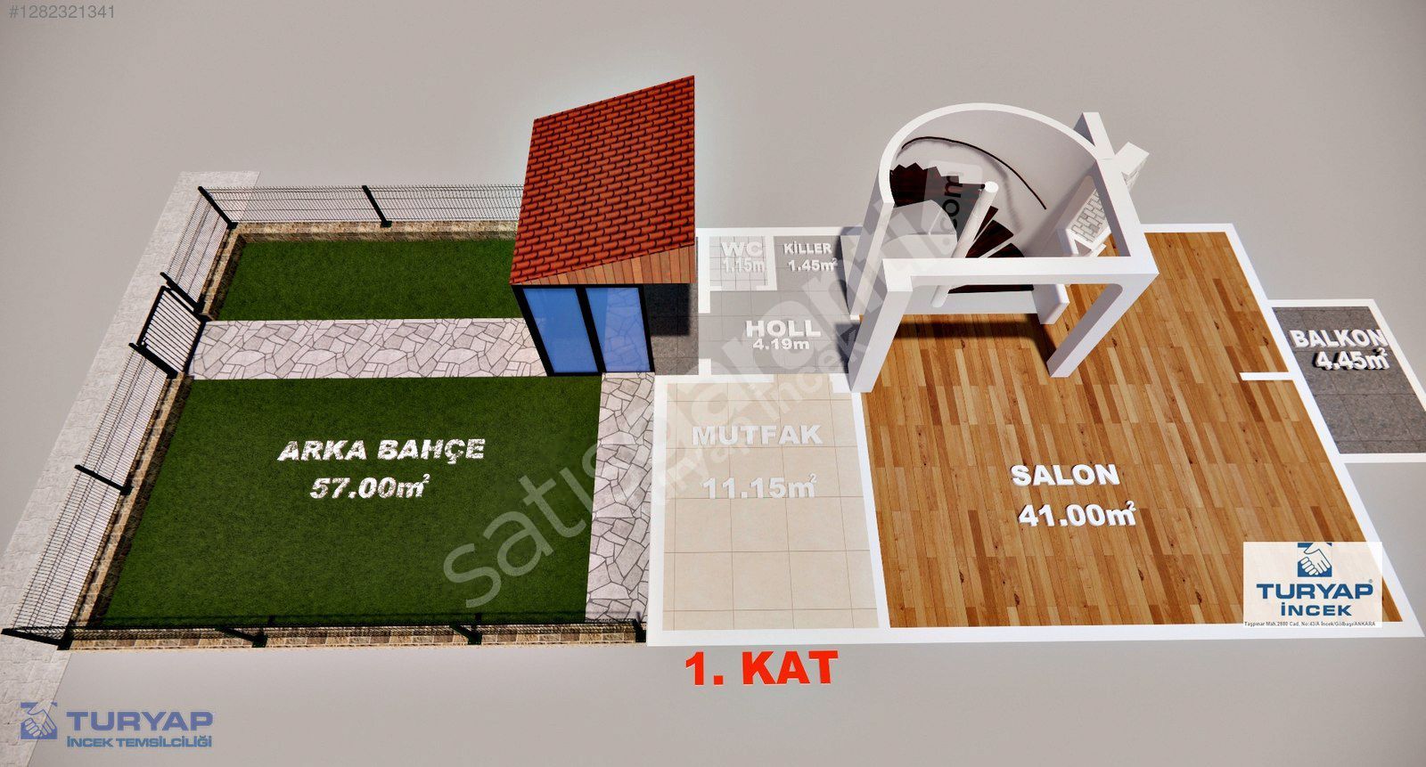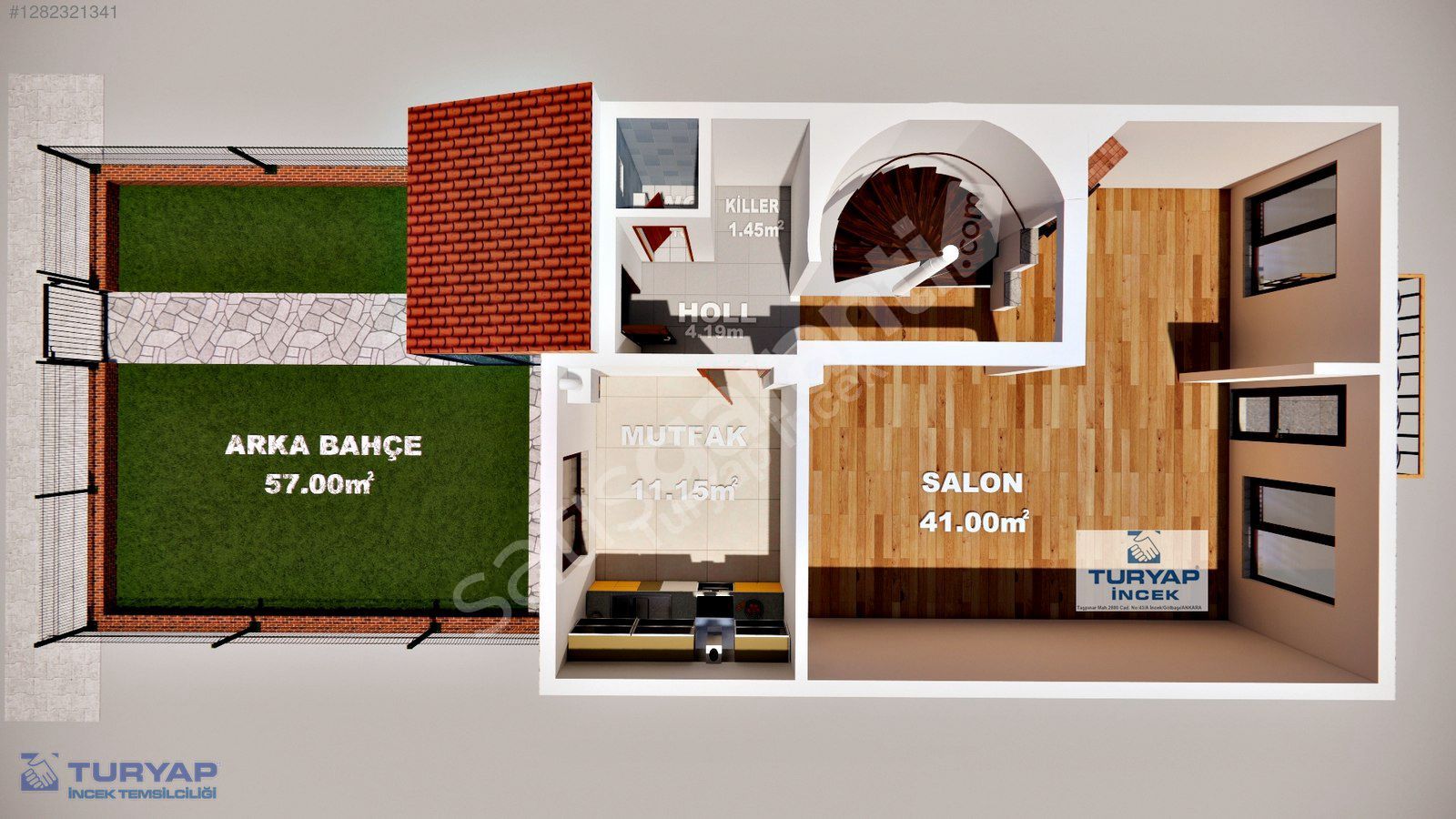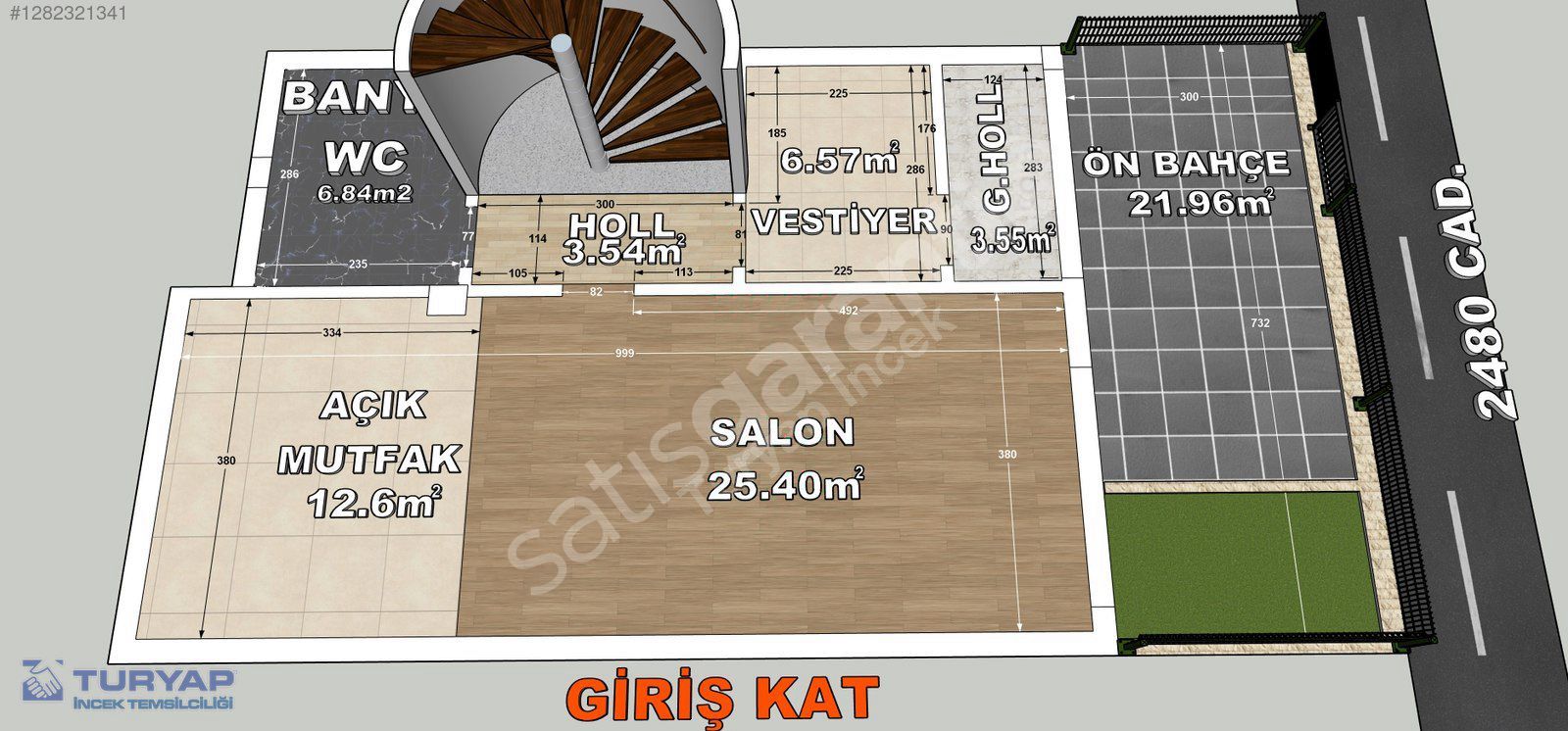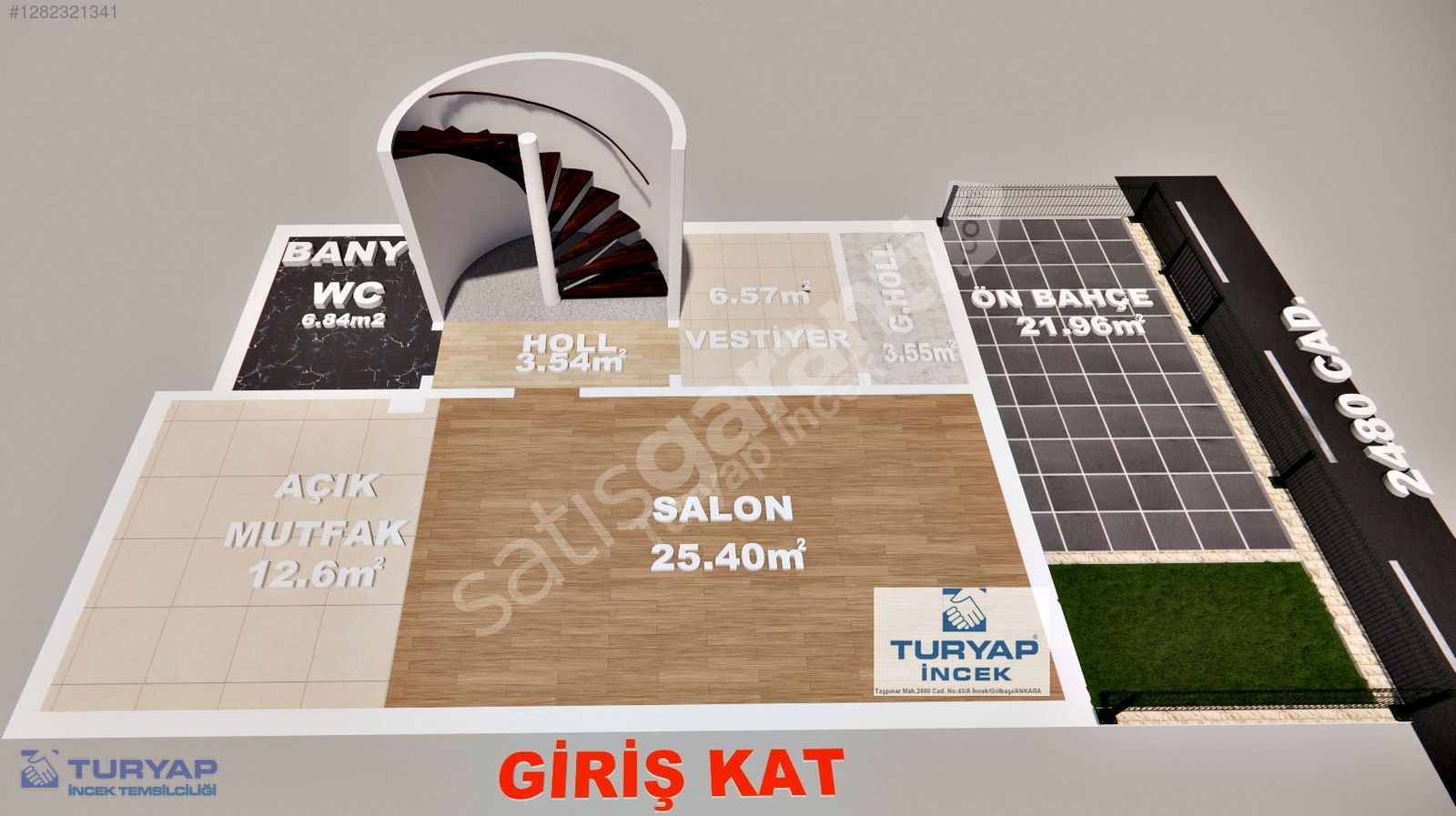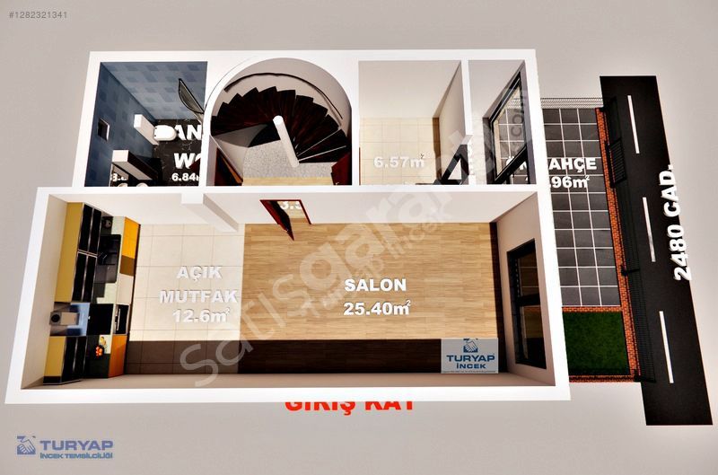 * GİRİŞ KAT; 2480 CAD. ÜSTÜNDE; SALON VE AÇIK MUTFAK, GENİŞ BANYO VE WC, ÖN BAHÇE ALANI