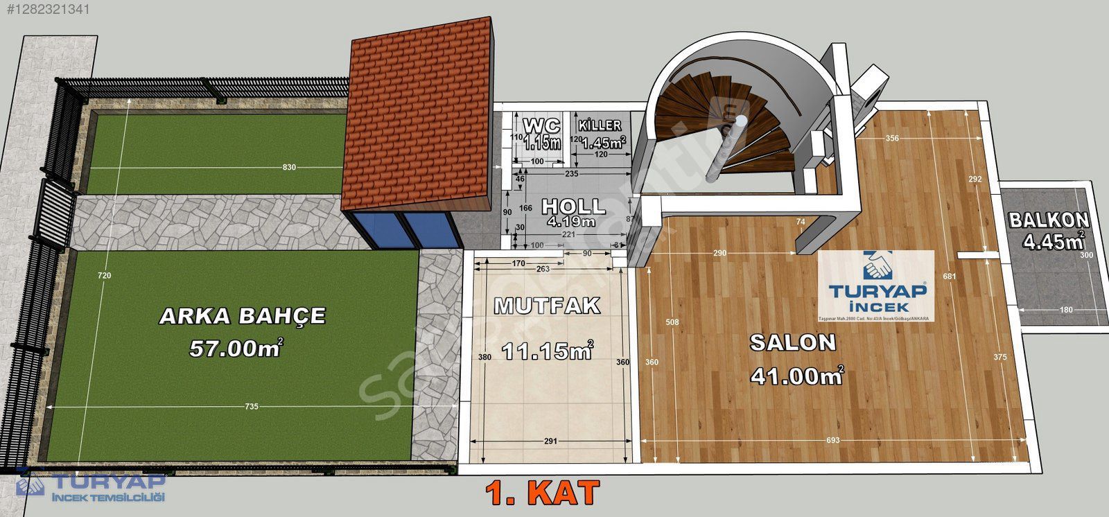 * 1 NCİ KAT; MUTFAK, SALON, WC, ÇAMAŞIR ODASI VE ARKA BAHÇE)