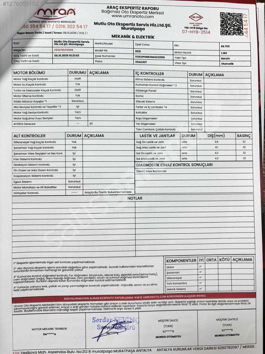 | Plaka / Uyruk | Türkiye (TR) Plakalı |