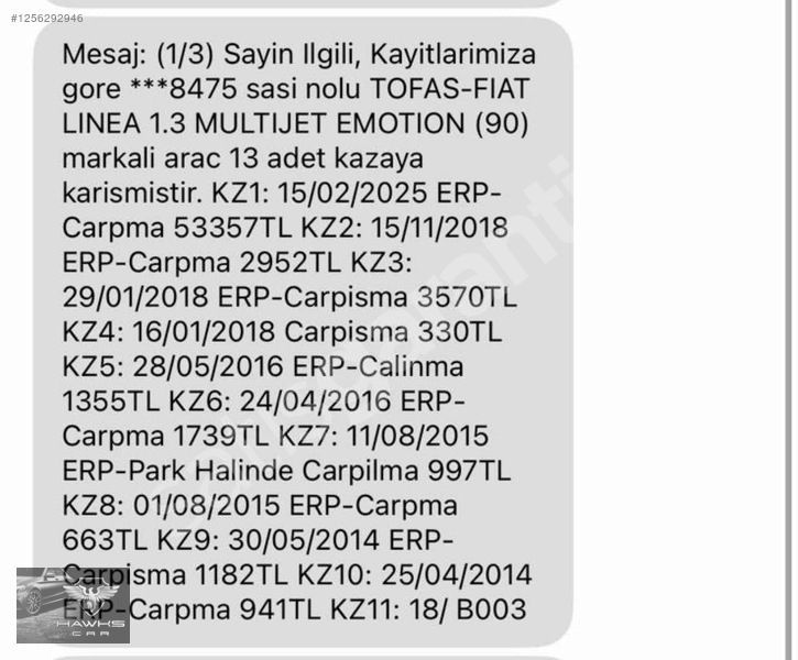 HAWKSCAR DAN BAKIMLI DEGİŞENSİZ MASRAFASIZ 1.3 LİNEA.
