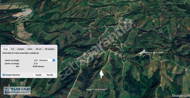 Sakarya Hendek Dereköy Mahallesi'nde satılık 7509 m2 fındık bahçesi ve kargir ev;