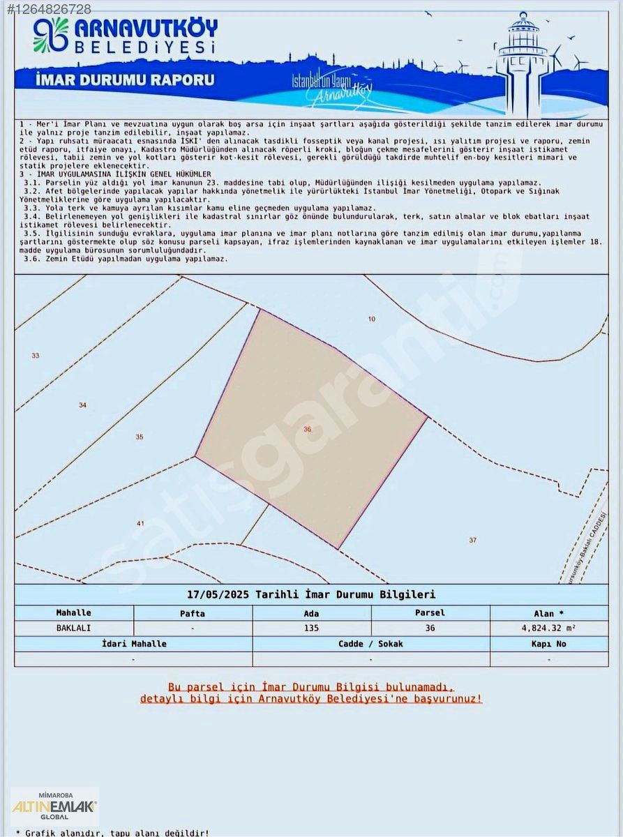 | İmar Durumu | Konut |