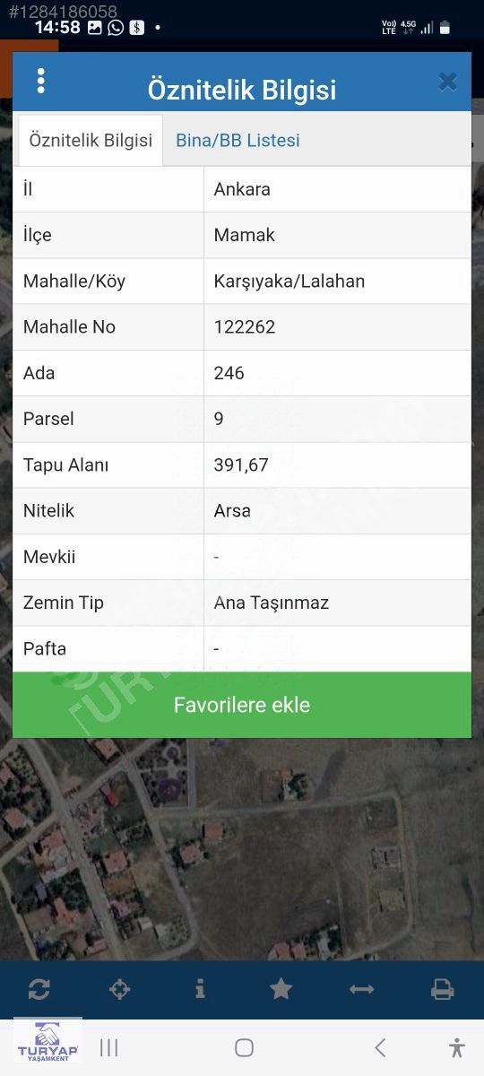 MAMAK KARŞIYAKA/LALAHAN MAHALLESİNDE SAMSUN YOLUNA ÇOK YAKIN MESAFEDE