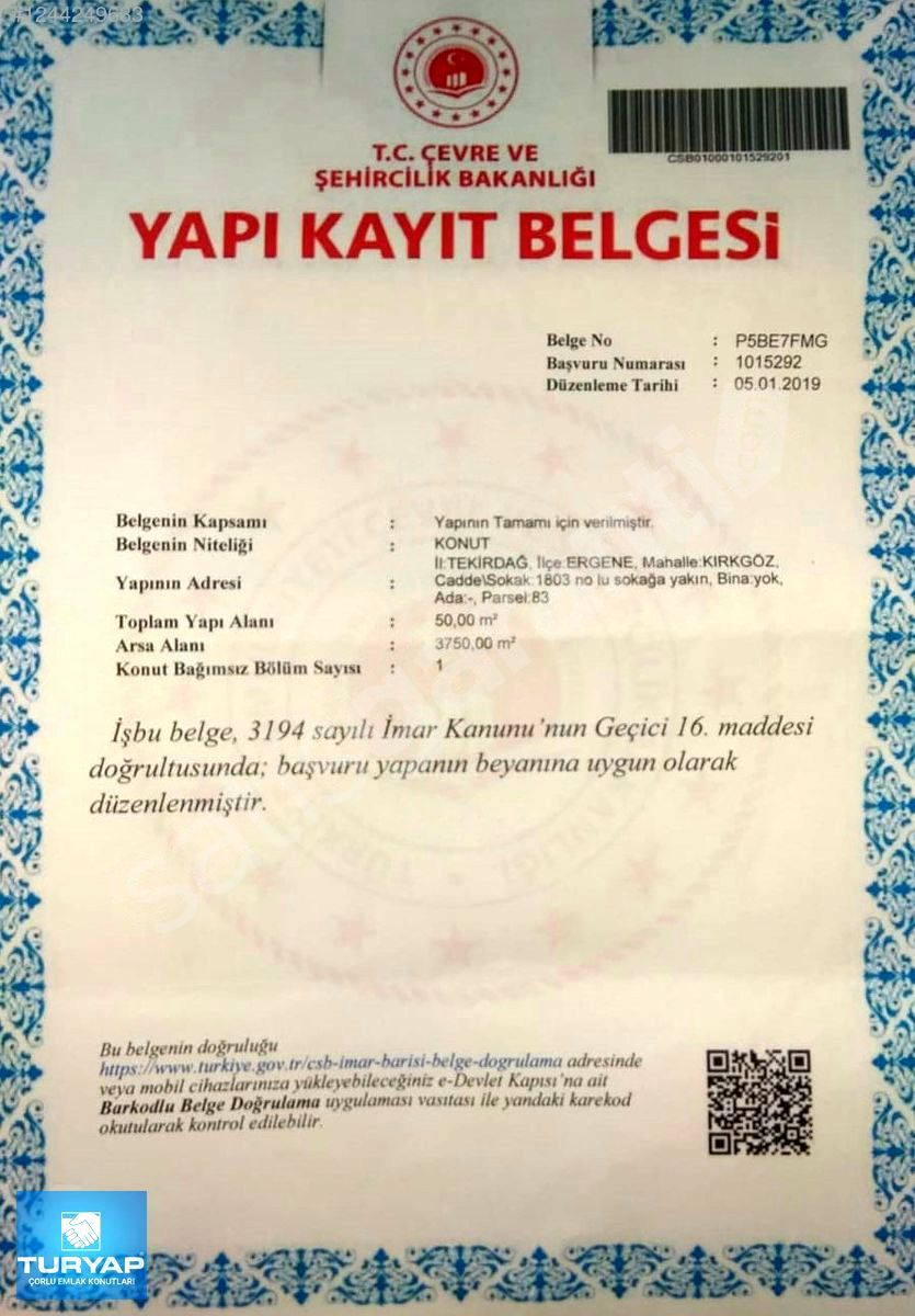 | Tapu Durumu | Belirtilmemiş |