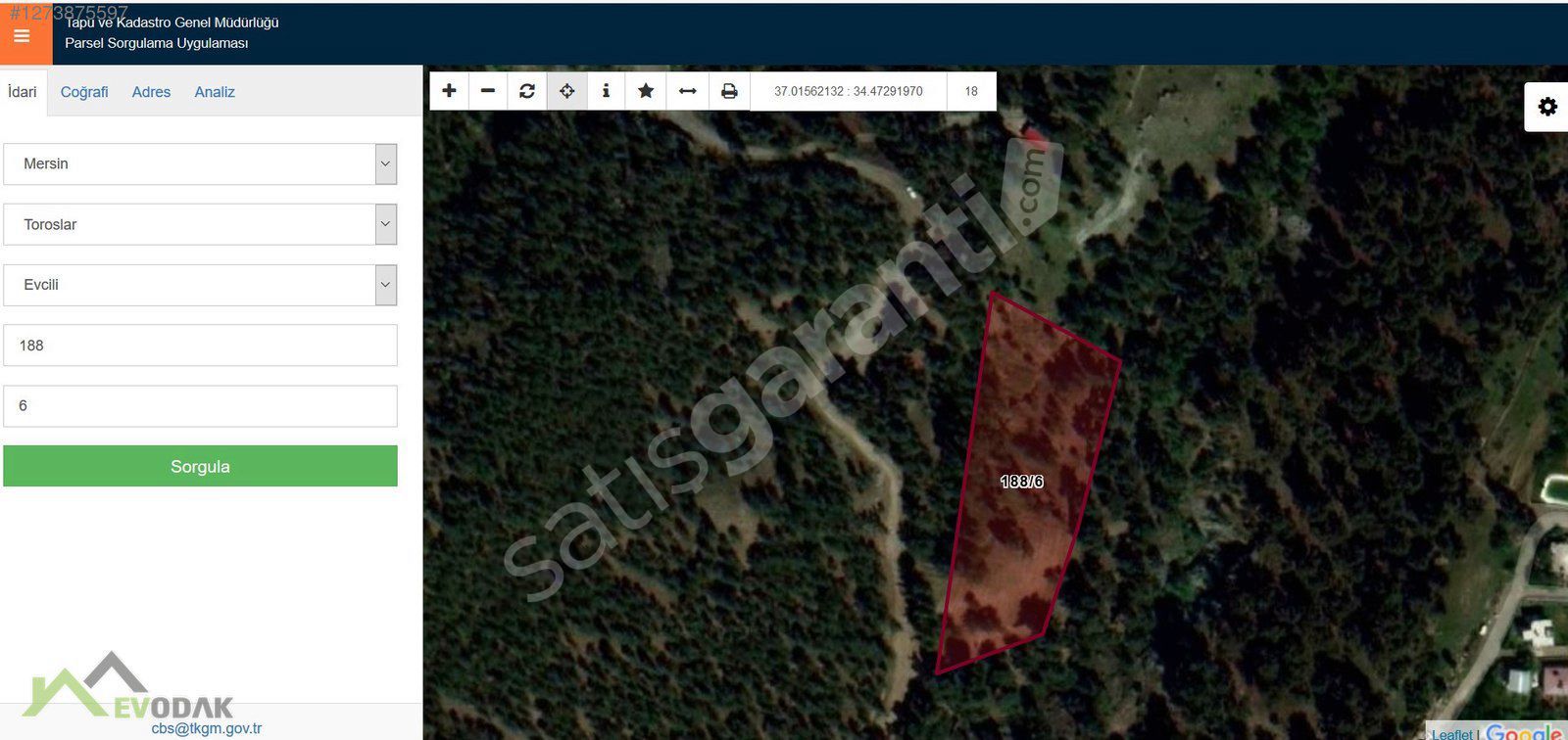 الموقع: مرسين / توروسلار / حي غوزال يايلا (Güzelyayla Mh.).