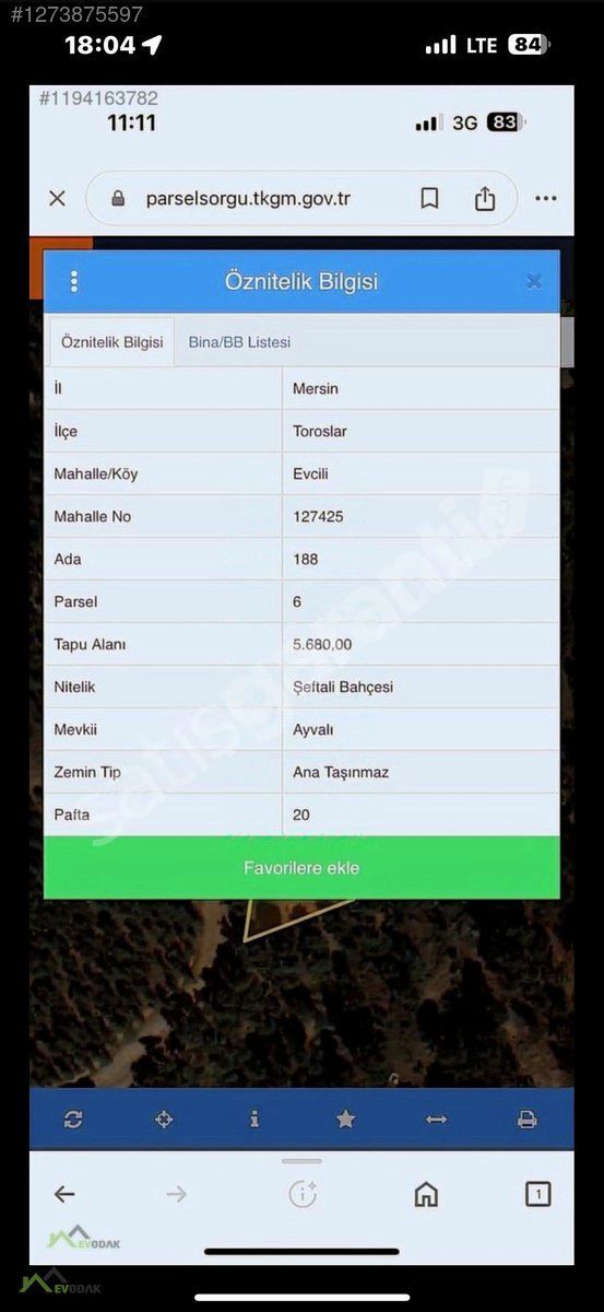 الجزيرة/القطعة (Ada/Parsel): 188 / 6