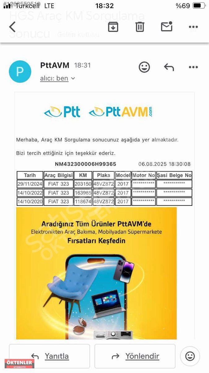 Aracın ön motor kaputu dışında değişen parçası yoktur. Sol arka çamurluk lokal boyalıdır. Km orijinaldir. Kilometre sorgulamaları ve tramer hasar kaydı sorgulamaları resimlerde mevcuttur.