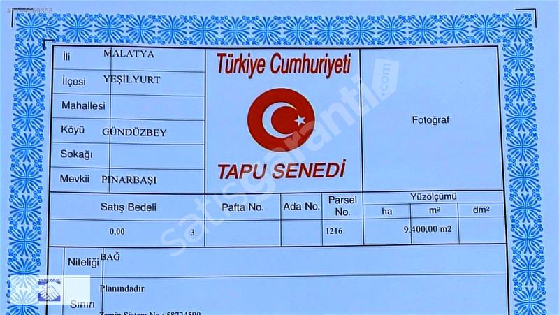MALATYA-YEŞİLYURT-GÜNDÜZBEY-PINARBAŞI (SULAK) MEVKİİNDE, MALATYA-ADIYAMAN YOLU ÜZERİNDE, YOLA GENİŞ CEPHESİ OLAN, MÜSTAKİL TAPULU 9.400. m2. ÜZÜM BAĞI.