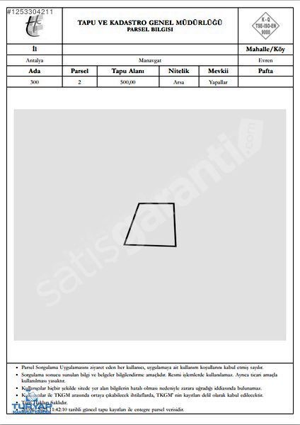 | Pafta No | Belirtilmemiş |