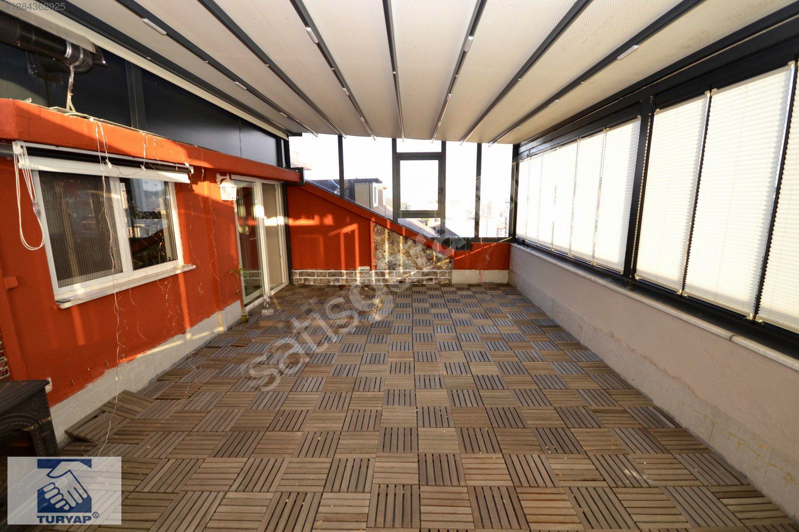 · Teras otomatik açılıp kapanan somfy france tente, (Teras tavanını tamamen örtüyor)