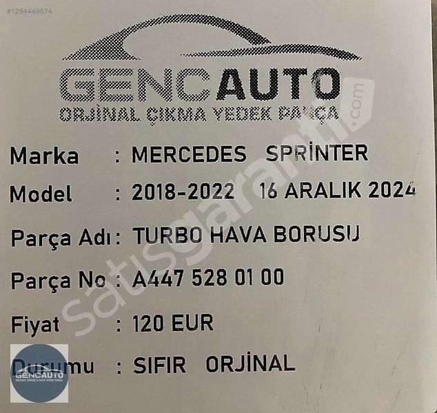 | Çıkma Yedek Parça | Hayır |