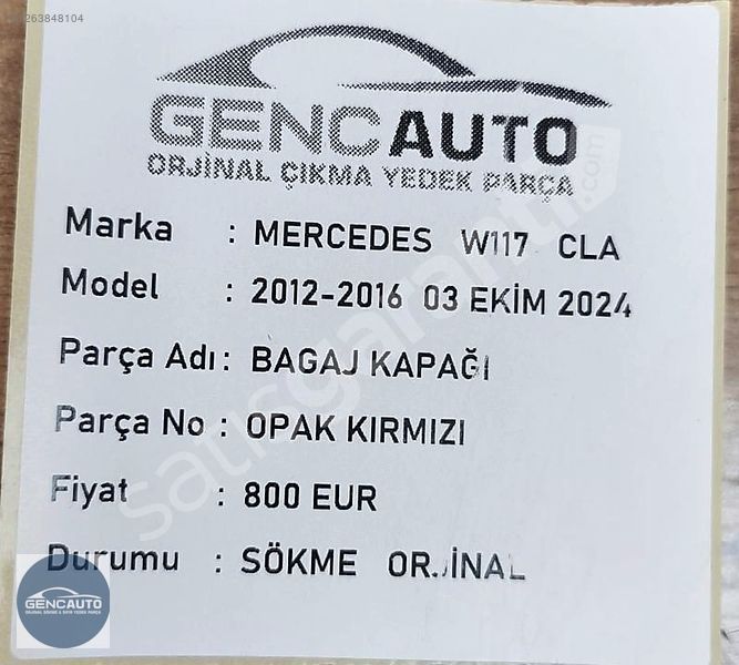| Çıkma Yedek Parça | Evet |