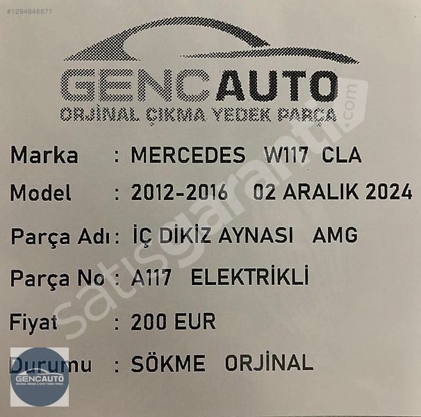 | Çıkma Yedek Parça | Evet |