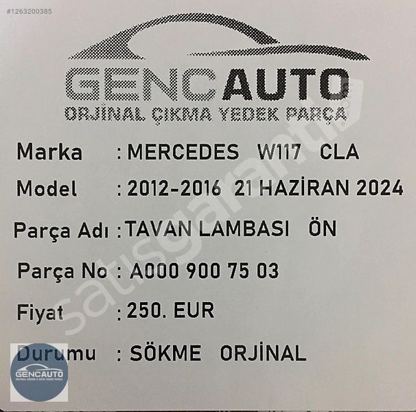 MERCEDES W117 CLA TAVAN LAMBASI ÖN SÖKME ORJ OEM A0009007503