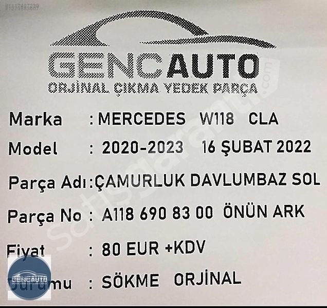 | Çıkma Yedek Parça | Evet |