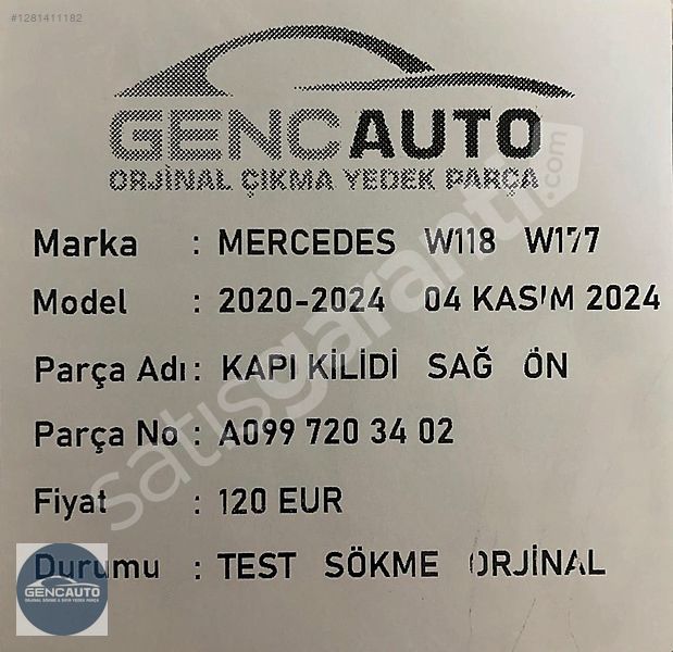 | Çıkma Yedek Parça | Hayır |