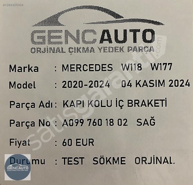 | Çıkma Yedek Parça | Evet |