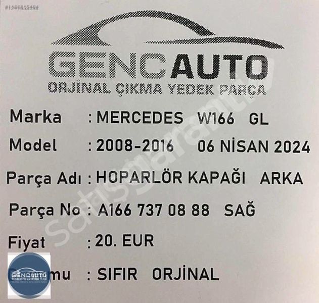 satisgaranti.com'da yer alan kullanıcıların oluşturduğu tüm içerik, görüş ve bilgilerin doğruluğu, eksiksiz ve değişmez olduğu, yayınlanması ile ilgili yasal yükümlülükler içeriği oluşturan kullanıcıya aittir. Bu içeriğin, görüş ve bilgilerin yanlışlık, eksiklik veya yasalarla düzenlenmiş kurallara aykırılığından satisgaranti.com hiçbir şekilde sorumlu değildir. Sorularınız için ilan sahibi ile irtibata geçebilirsiniz.
