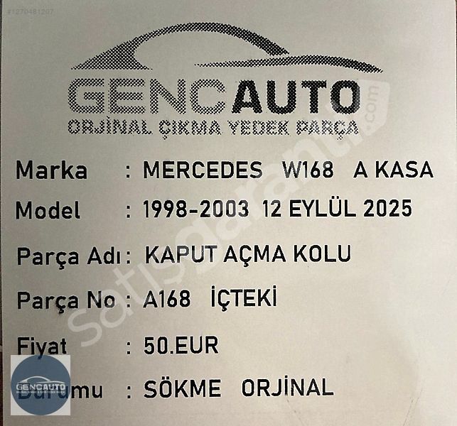 | Çıkma Yedek Parça | Evet |