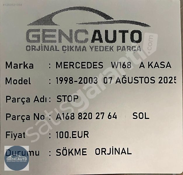 | Çıkma Yedek Parça | Evet |
