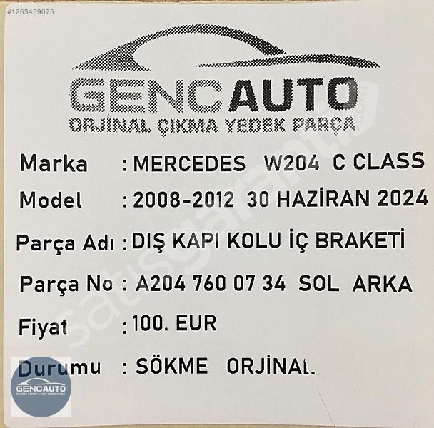 | Çıkma Yedek Parça | Evet |
