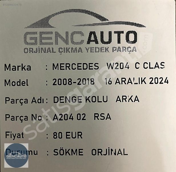 | Çıkma Yedek Parça | Evet |