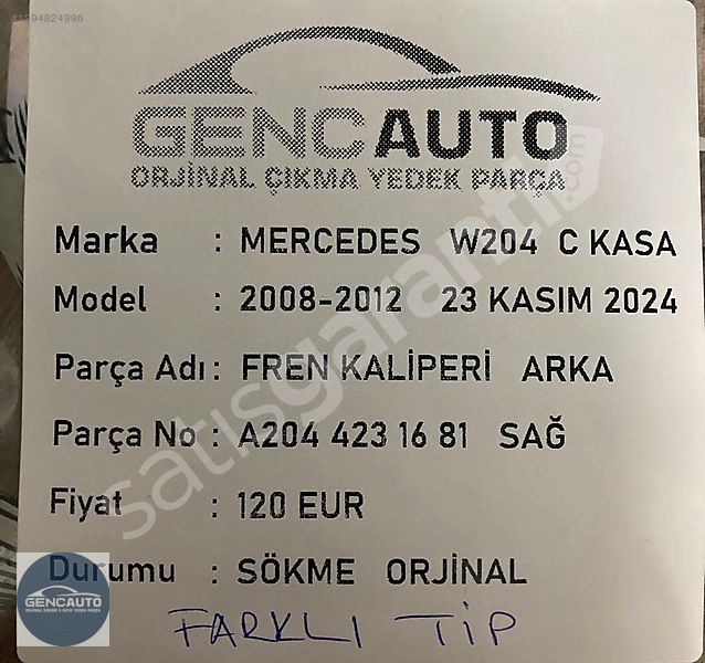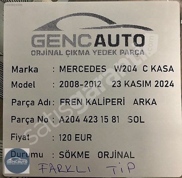 | Çıkma Yedek Parça | Evet |