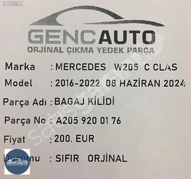 | Ürün | Bagaj Kilidi |