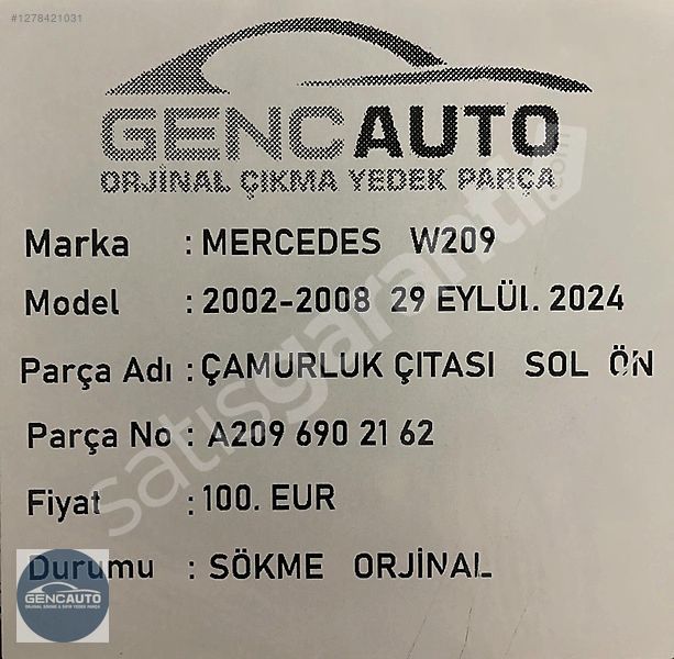 | Çıkma Yedek Parça | Evet |
