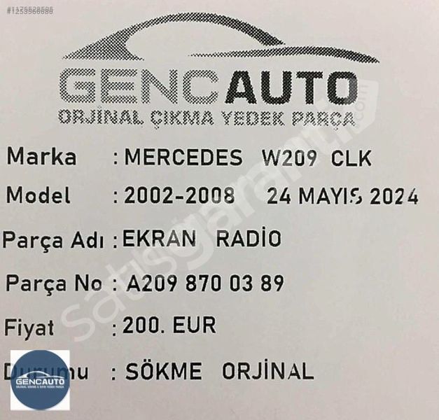 MERCEDES W209 CLK EKRAN RADİO SÖKME ORJİNAL OEM A2098700389