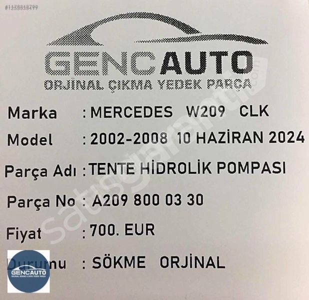 | Çıkma Yedek Parça | Evet |