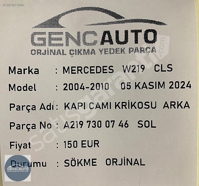| Çıkma Yedek Parça | Evet |