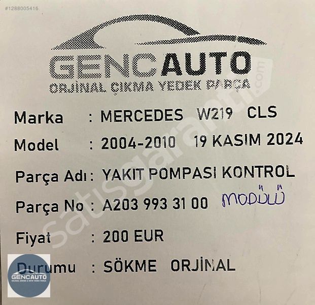 | Çıkma Yedek Parça | Evet |