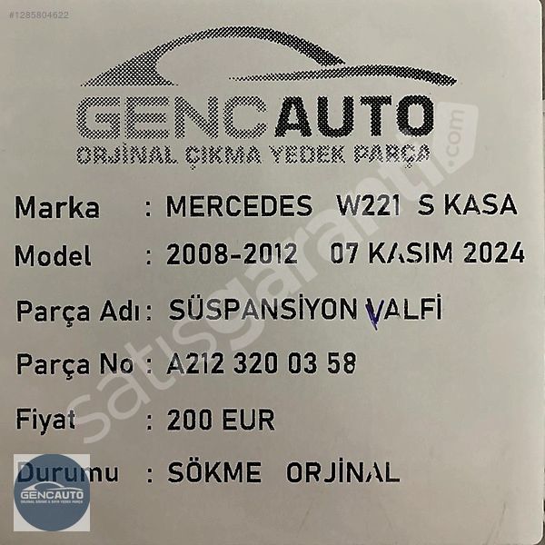 | Çıkma Yedek Parça | Evet |