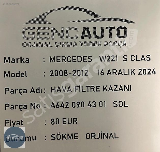 | Çıkma Yedek Parça | Evet |