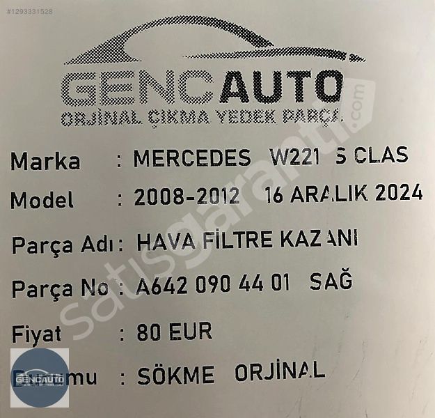 | Çıkma Yedek Parça | Hayır |