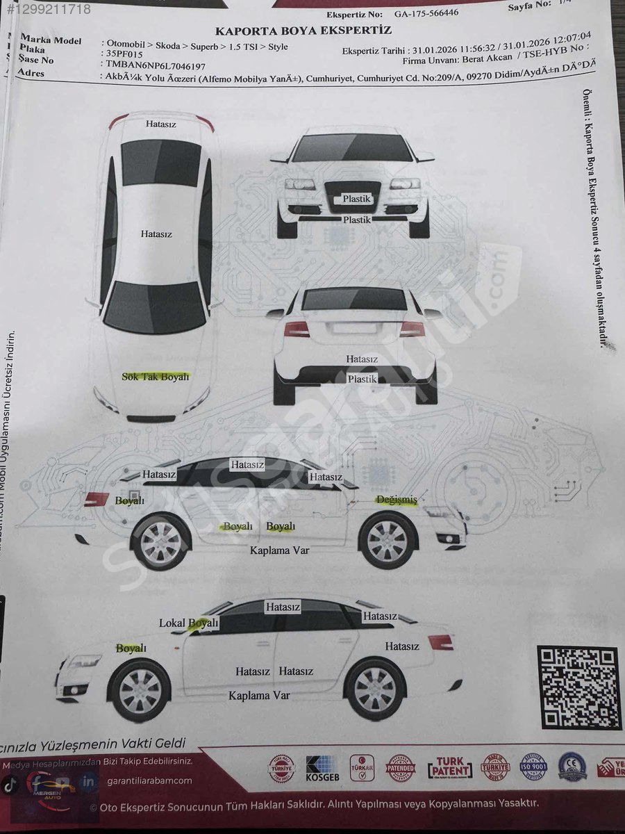 | Plaka / Uyruk | Türkiye (TR) Plakalı |