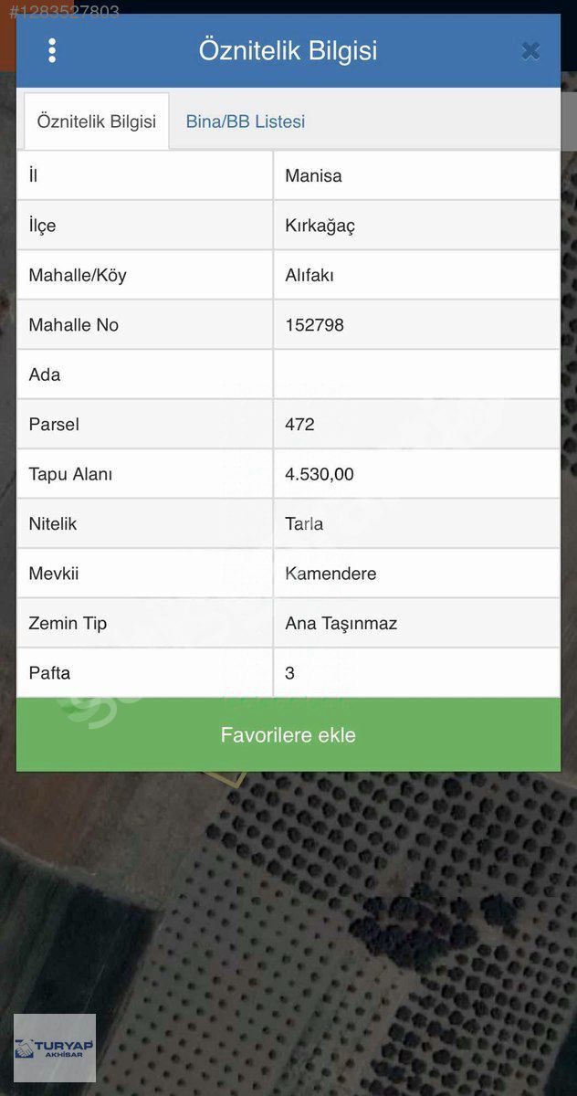 | İmar Durumu | Tarla |