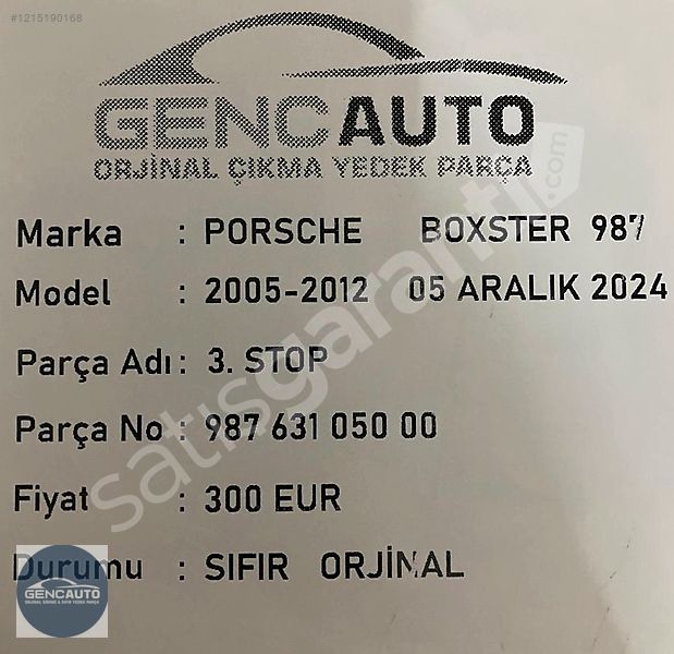 | Araç Markası | Porsche |