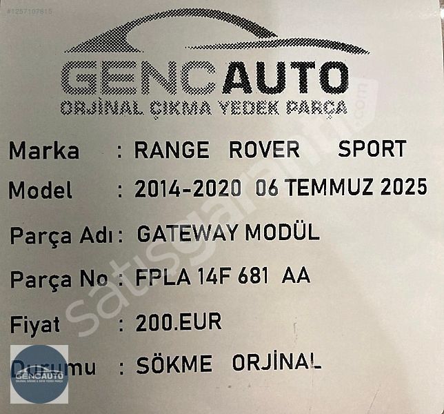 | Çıkma Yedek Parça | Evet |