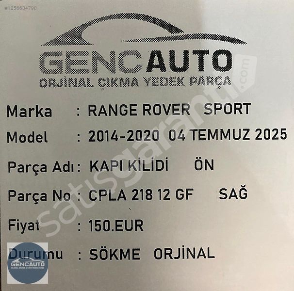 | Çıkma Yedek Parça | Evet |
