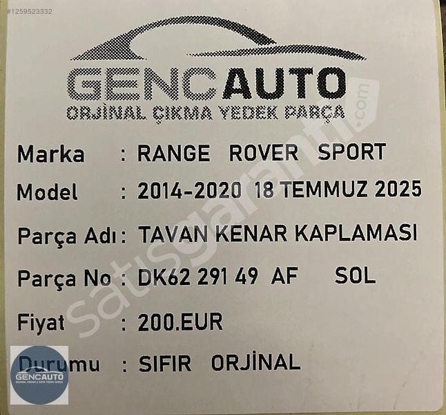 | Çıkma Yedek Parça | Hayır |